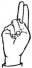 На ћирилици написано МИРОСЛАВ ПЕСЛАЋ састоји се из 14 слова [?]. Исписано ћириличном једноручном азбуком за глувонеме: